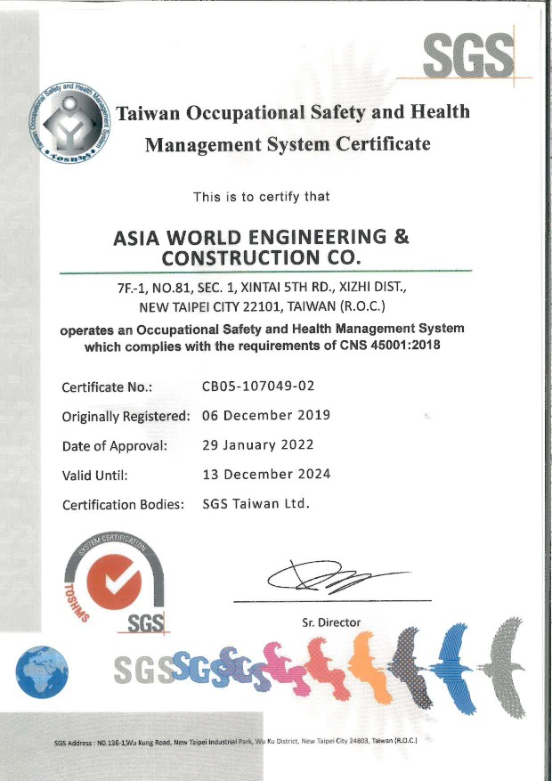 CNS 45001:2018 驗證證書